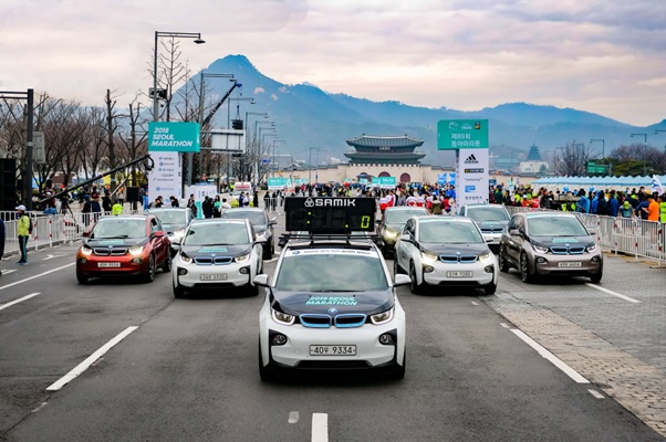 제공된 11대의 BMW i3는 선수들의 앞에서 기록을 알려주는 시계 차량과 현장 심판진들의 운영차로 활용되었다. 마라톤 대회에서 전기차를 선호하는 이유는 선수들 앞에서 달리는 운영차의 배기가스를 없앰으로써 선수의 기록 향상을 돕기 위함이다.