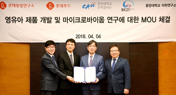 롯데푸드와 롯데중앙연구소는 중앙대학교 산학협력단과 4일 중앙대학교에서 고기능성 프로바이오틱스 소재 개발에 대한 공동연구와 학술교류 협정식을 진행했다고 5일 밝혔다.
