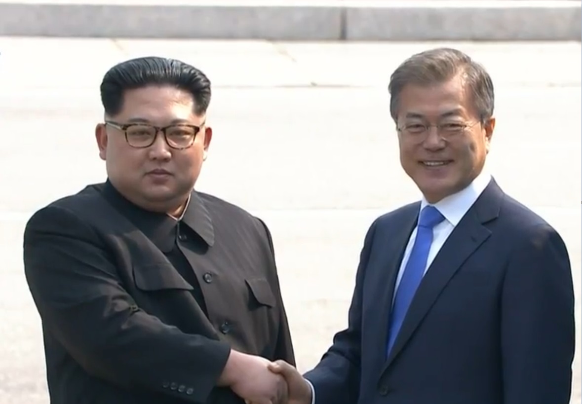[소비자경제=오아름 기자] 문재인 대통령과 김정은 북한 국무위원장이 27일 오전 9시 27분께 남북 군사분계선에서 역사적인 첫 만남을 가졌다. 분단이래 남과 북 지도자가 군사분계선에서 만난 것은 처음이다.