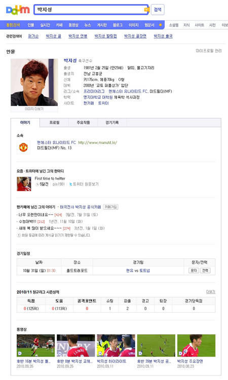 이와 함께 스포츠 스타를 검색하면 해당선수의 통산 성적이나 시즌 성적, 경기 일정, 최근 경기 기록 등을 검색결과로 볼 수 있다. 예를 들어, 야구 선수 ‘추신수’는 타율기록 그래프, 축구 선수 ‘박지성’은 EPL(잉글랜드 프리미어 리그) 경기 하이라이트, 골프 선수 ‘최경주’는 개인기록과 시즌 상금 순위 등을 제공한다.