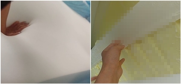 “구매한 지 3개월 정도밖에 안 지났는데 침대 꺼짐 현상이 발견돼 A/S를 요청했다가 우연히 침대 커버를 벗겨봤는데 라텍스가 아닌 스펀지가 들어 있었어요. 색도 심하게 변해 있었고요”