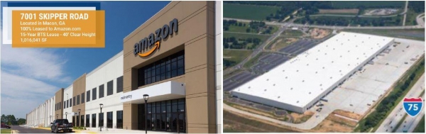 미국 애틀랜타 인근 약 9만9천㎡(3만평) 부지에 있는 이 물류센터는 미국 부동산투자회사 `USAA 리얼 에스테이트 컴퍼니`가 올해 7월 완공한 시설로 아마존이 15년 장기 임차 후 최대 25년까지 추가로 임차할 수 있는 조건으로 계약된 수익형 우량 자산이다.