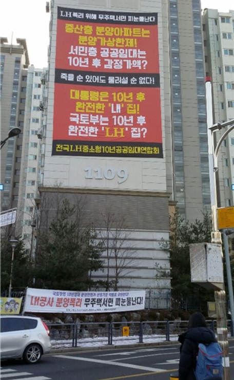 [소비자경제신문=권지연 기자] 새해를 맞아 살던 집에서 내몰릴 처지에 놓인 전국LH중소형 10년 공공임대아파트 주거민들의 피눈물 나는 항의와 호소가 이어지고 있다.