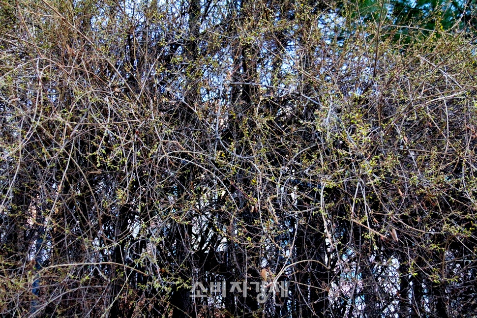 꽃샘 추위가 오기 전인 11일 늦은 오후 서울 주택가에 꽃망울이 맺힌 개나리가 본지 카메라에 잡혔다.
