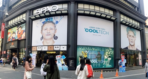 또 기후변화 홍보대사인 노라조와 협업해 ‘스파오 쿨테크’를 선보였다. 이랜드 신소재 개발팀이 새롭게 개발한 기능성 소재를 활용해 여름철 에너지 절감 활동에 고객들이 자연스럽게 동참할 수 있도록 했다.
