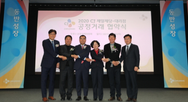 CJ제일제당은 5일 서울 중구 CJ인재원에서 대리점주 대표들과 공정거래협약을 맺었다. 지난해 기준 325개 모든 대리점들이 대상이다. 대리점들은 CJ제일제당이 만든 고추장·즉석밥(햇반)·참기름이나 콩나물·만두·핫도그 등의 식품을 판매한다. 강신호 CJ제일제당 식품사업부문 대표는 체결식에서 “CJ제일제당의 성장과 발전은 대리점이 있었기에 가능했다”며 “국내 대리점 업계를 대표하는 상생모델로 거듭날 것”이라고 말했다.